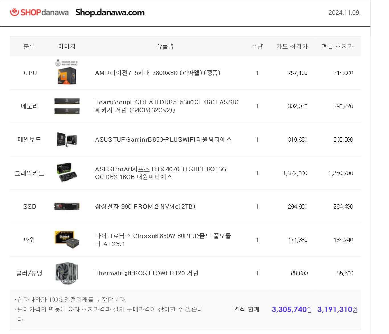 실제로 다나와 견적은 가격 참고용이고 11월 한달 각종 할인행사들을 이용해